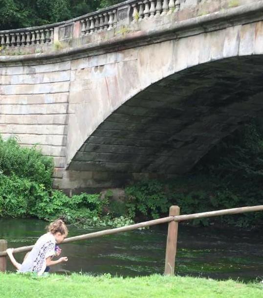 A listed early 19th century ashlar road bridge which spans the river Churnet on the parish boundary between Alton and Farley.