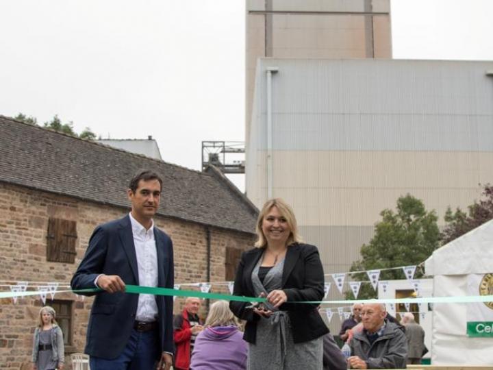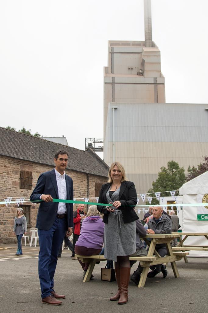 Pictured: Karen Bradley MP cutting the ribbon, with Ignacio Mirasol, Plant Manager at Lafarge Cauldon, at the 2017 diamond anniversary celebrations.