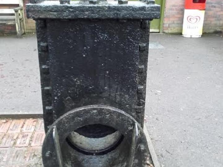 Pictured is one of the original outlet valves from deep hayes reservoir built in 1849 and replaced in 1952.