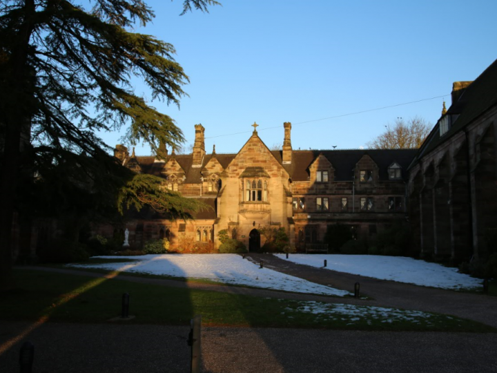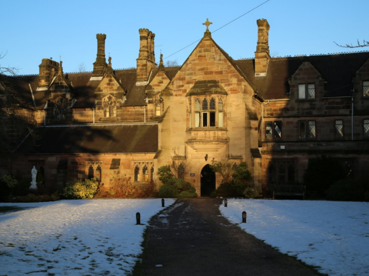 A listed hospital, esigned by AWN Pugin in the mid 19th century. It is of ashlar construction with edged herringbone tooling and tiled roof. It forms part of a quadrangle with Catholic church and school.
