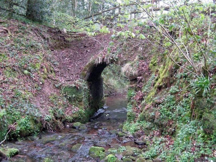 Walk up the main rackway/plateway as far as the packhorse trail, take the footpath east (down) into the Shirley Valley. Cross one stream on a footbridge. Over a small hill and cross the next stream (Shirley Brook). Very soon thereafter bear right, you are on the original plateway route and will cross this bridge in a 100m or so.