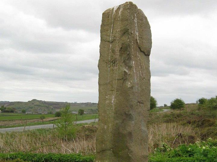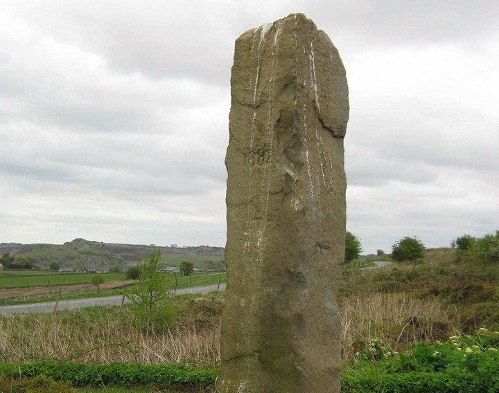 This standing stone is called Windyway Cross, on Ipstones Edge (SK05814897). It was set up to guide packhorses over the hills from the copper mines of Ecton down into The Churnet Valley. It marks a safe route over Ipstones edge, in between the boggy bits, on the track from Ecton copper mine to Whiston Smelter. Its tall, finger-like shape could be spotted from miles around. The Whiston Smelter needed more coal than it did copper, so it made sense to position the works nearer the coal fields than the copper mine. Dating from 1882, it replaced one from 1770.