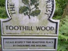 Toothill Rock STAND WELL BACK FROM THE EDGE! For a panoramic view of the Churnet Valley there is no better place than Toothill Rock, but beware there is a steep drop and a very long fall. The rock was formed because the Hollington Sandstone has greater resistance than the underlying Hawksmoor Sandstone - responsible for the valley's steep sides. |