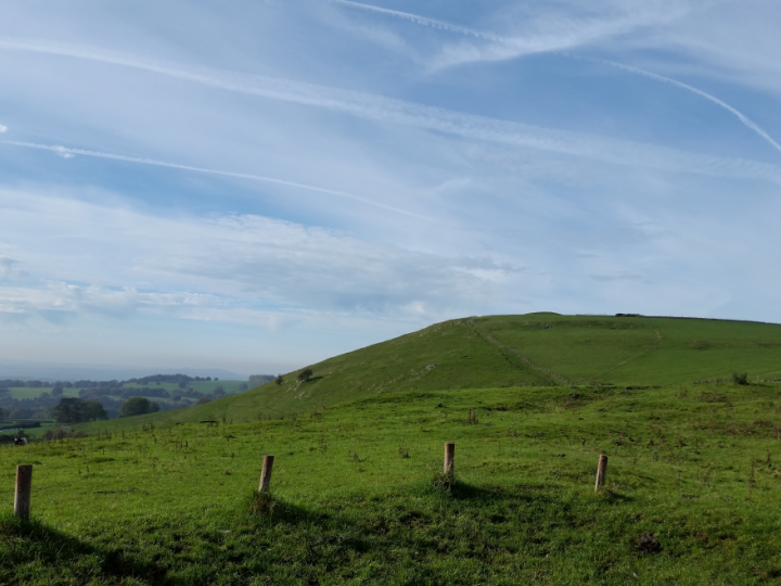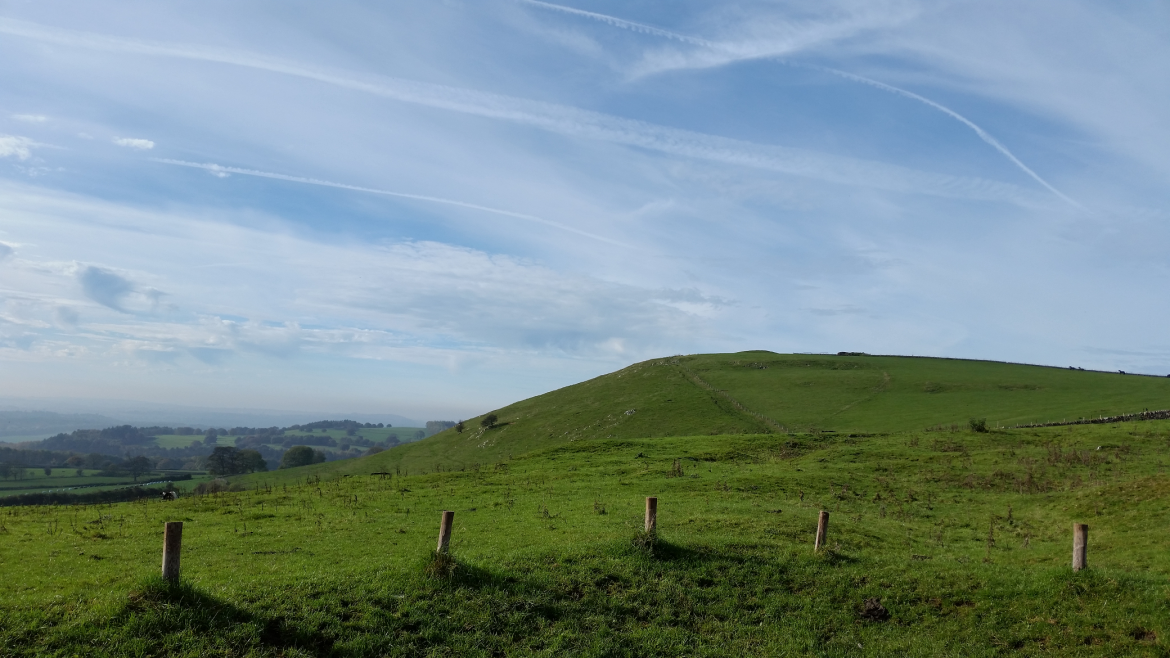 The Ordnance Survey trig point measures the peak of the range at 371 metres (1,217 ft) above sea level.