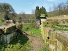 Drum plinths These large stone foundations used to belong to the "drum" that was used with the endless steel rope to pull the empty carts of the 1847 rack railway back up the inclined plateway with the weight of the full carts going down. |