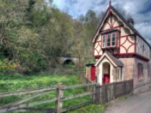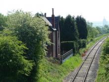Former crossing-keepers cottage Now privately owned, this house was formerly the railway-keepers cottage. It is painted in North Staffordshire Railway's colours. Oakamoor, railway |