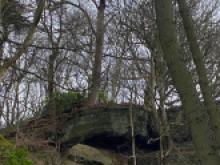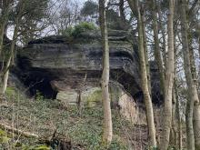 Ina's Rock At the top of the Churnet valley at "Bunbury Hill" a fort was built by a Saxon King round 700 AD. Ina's Rock is about a mile east of Bunbury Hill. It is understood that the King Ina held court within the shadow of Ina's Rock in 716 AD before attacking the fort.The rock was therefore call (King) Ina's rock by historians. |