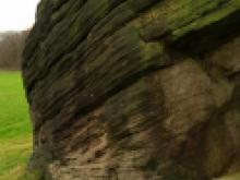 Rough Rock In the middle of one of the fairways there is a prominent block of Rough Rock showing large scale cross-bedding formed by a Namurian river. Which way do you think the river was flowing? Try to find contortions of the bedding due to water escape as the sediment compacted and solidified. The direction of the layers indicates that the Churnet once flowed in the opposite direction. More information on the geology and geomorphology of the area can be found in our Geotrail leaflets in the Walks section of the guide. |